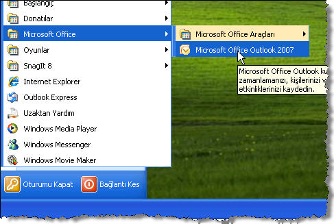 seçerek Outlook 2007 uygulamasını başlatın