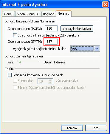Giden Sunucu(SMTP)